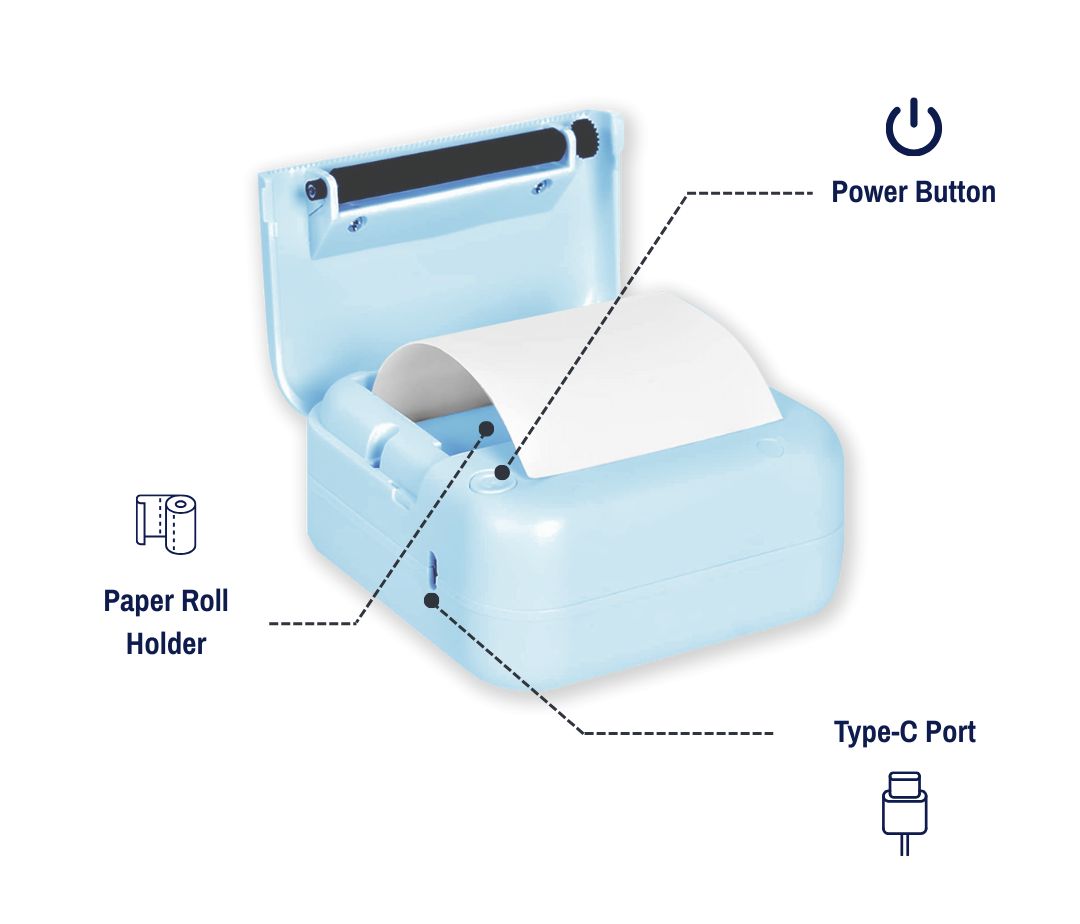 No ink required. The printer uses thermal printing technology, so you only need thermal paper rolls.