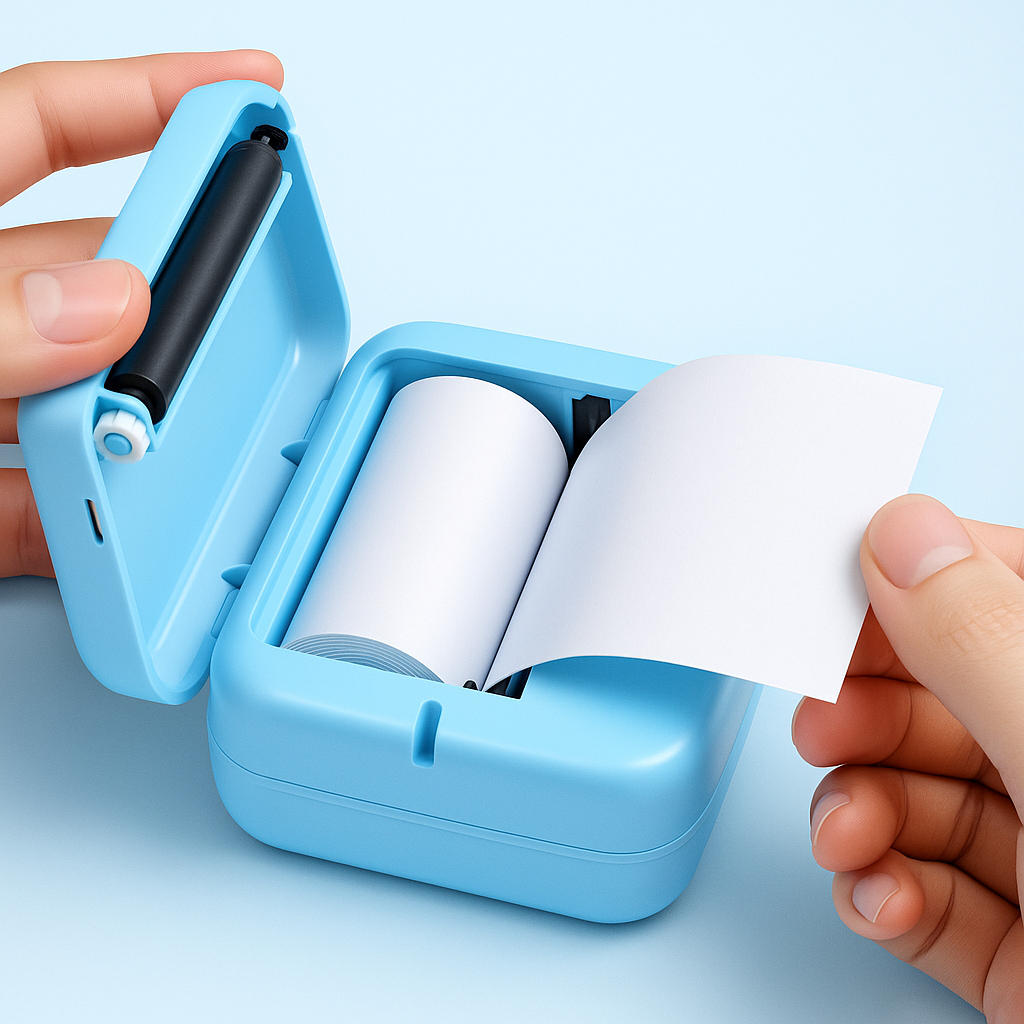 No ink required. The printer uses thermal printing technology, so you only need thermal paper rolls.